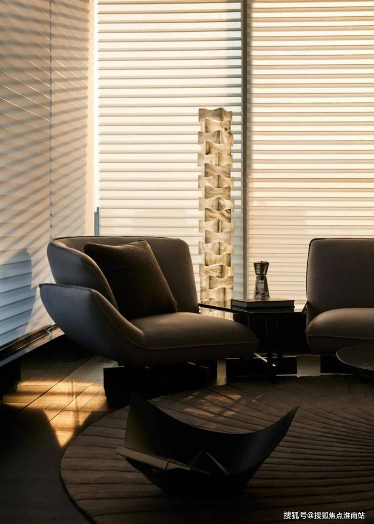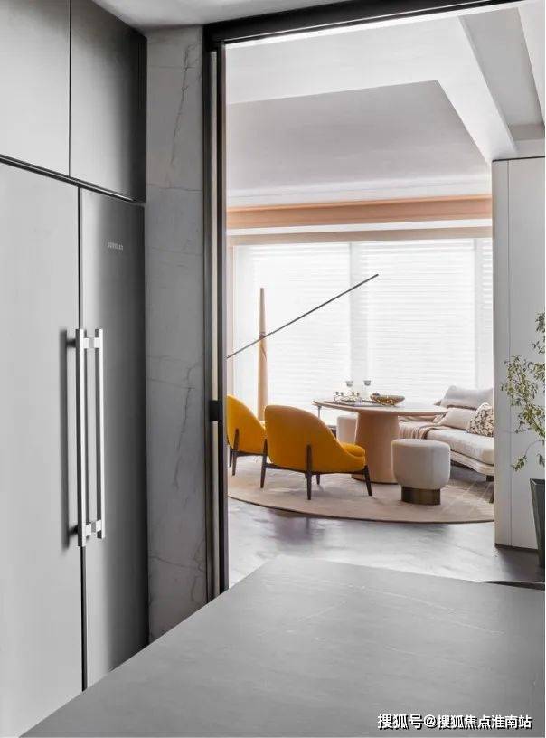 由建筑大师Jean-marie massaud设计的Poliform Le Club扶手椅,用当代的手法重新诠释了上世纪的设计原型。八边形边茶几来自捷克品牌bomma,水晶玻璃突破传统,一抹橘色在优雅氛围中轻盈雀跃。
