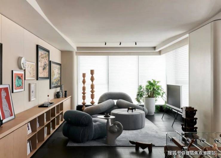 如果说个性空间仍具备社交属性,那么和家人在一起,则可以卸下身份,更自在、更亲密,或躺,或卧或盘腿,做回天真的自己。家庭厅以混搭,趣味的软装,营造出轻松的家庭氛围。