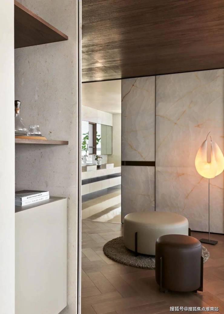步入式衣帽间与卧室相连的灰空间里,来自国内目前唯一一盏的 “灯光诗人”Ingo Maurer落地灯,为空间注入如诗般的空灵艺术感。
