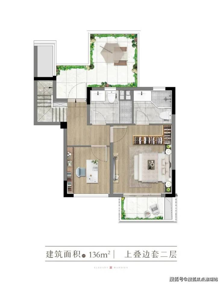 一层一世界,居所四方皆有露台,分别与玄关及男主人私属空间、女主人私属空间、主卧、家庭厅连接。公共区与私享区互不打扰,各享空中庭院,皆可迎风入怀,四时风景,心境自由转换。
