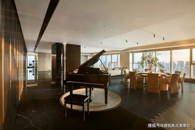 客餐厅跨度超过17米,天花以柔和的弧线包裹住原有横梁,带来视觉统一和绵延感。