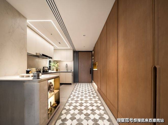 海上清和玺售楼处电话4009966224☑️☑️厨房方面,水波纹玻璃+金属造型玻璃移门,隐形上轨,厨房交付线性凉霸、末端饮水、博世或AEG(或同等品牌)烟灶、洗碗机三件套。海上清和玺售楼处电话4009966224☑️☑️