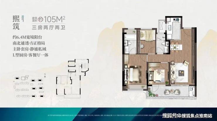 建面约105㎡ 三室两厅两卫