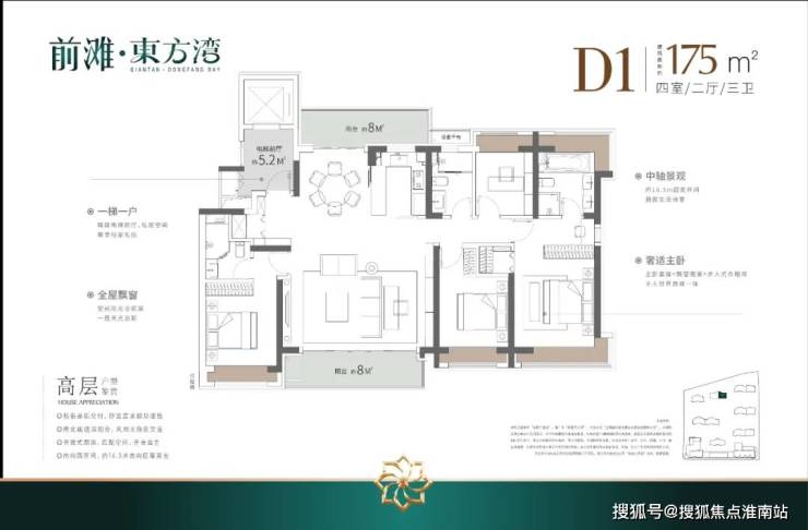 ◆户型分布:建面约103㎡-120㎡-140㎡-175㎡3-4房