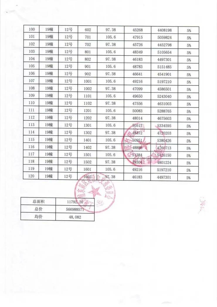 一房一价表: