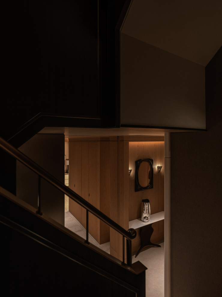 在动线设计上,影音雪茄室取消了独立门扇,书柜处被设置为通道。