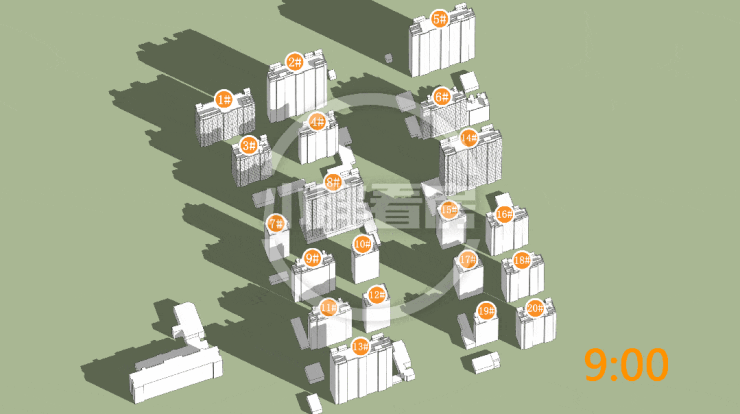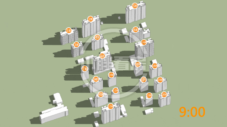 春分秋分(9-15时)在售楼栋日照时间和动图