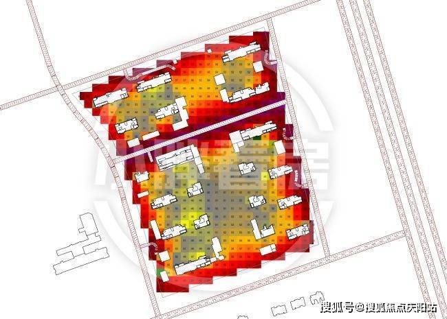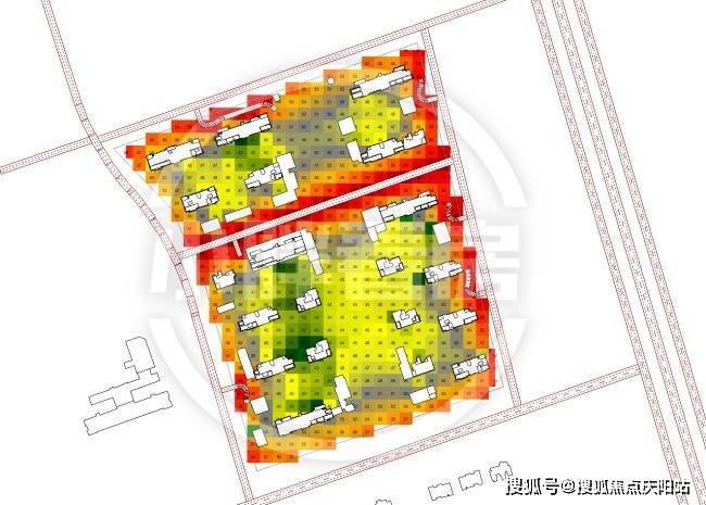 小区内噪音分布,采集位置为地面高度1.5m处,模拟人耳高度。