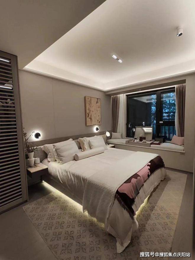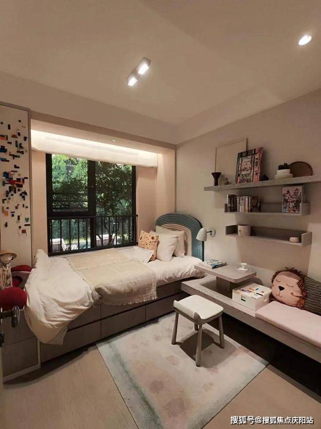 ③飘窗优化:例如北向儿童房采用等面宽飘窗,同时飘窗空间再延伸,这样可设计一张垫高的1.5米大床,有效拓宽卧室空间。