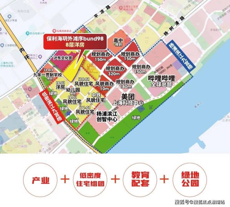 项目位于杨浦滨江红线内(以平凉路为界),占位杨浦滨江南段,12号线宁国路站轨交便捷出行,项目距离黄浦江约800米,可以步行享受杨浦滨江的休闲、文化资源。