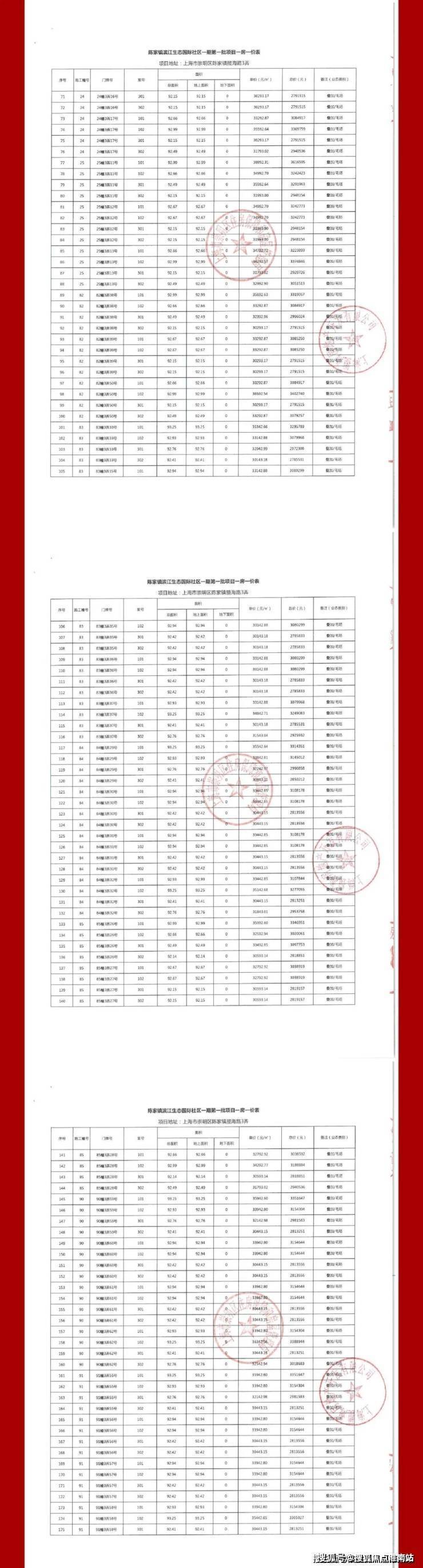 项目一房一价表