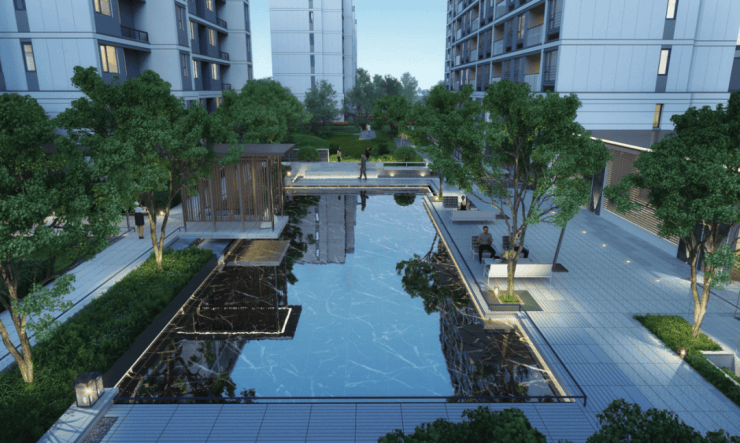 公共区域:约35%绿化率、人车分流、社区泛会所、儿童活动区