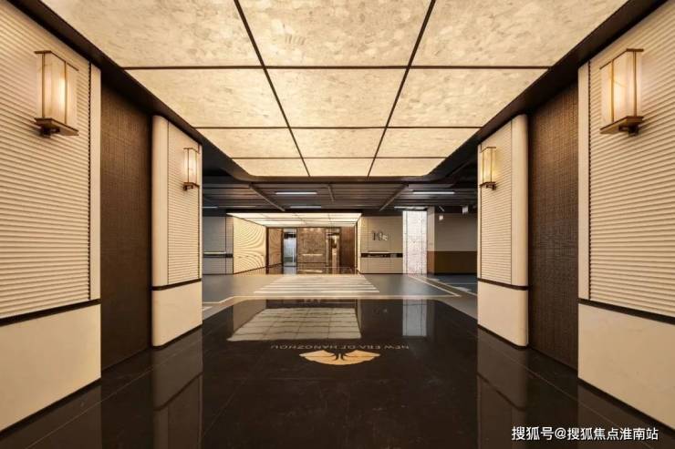 厅堂内大型水景艺术灯高悬于顶,以天为幕、气场大开,照映大理石地面,通体气派,传神东方宅邸的风骨。