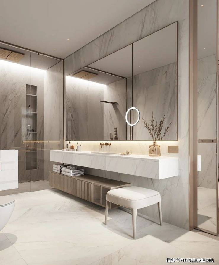 卫生间通过明亮的光线来表现空间的洁净,白色的大理石把空间衬托的干净纯粹,更显高级感。