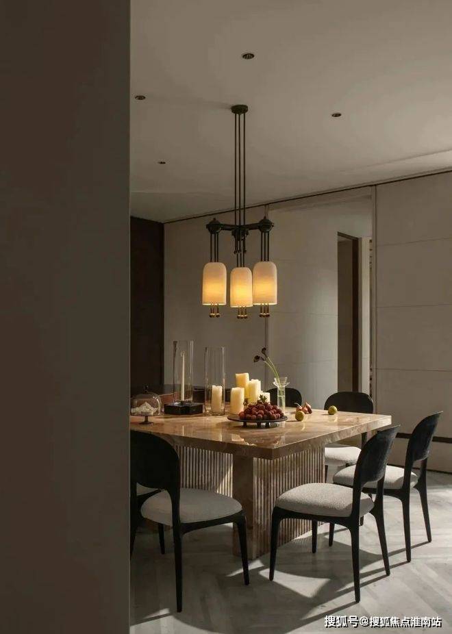 无论是取材于海派建筑的窗帘盒,还是餐桌上纵向瓦楞线条的设计,或者门套上仿自弄堂门楣的元素,都展现了对海派美学的多重探索。