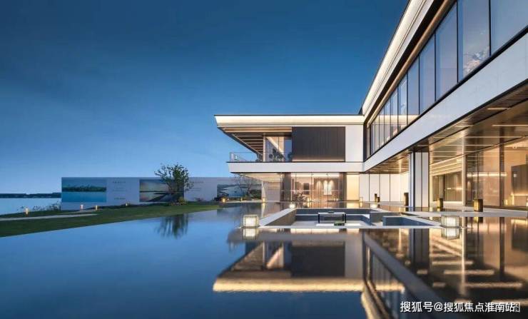 采用高端酒店的设计手法,打造了约28m宽,约5m高的超奢华入口展示面;考究和精致的景观设计,在此还自然于镜湖。