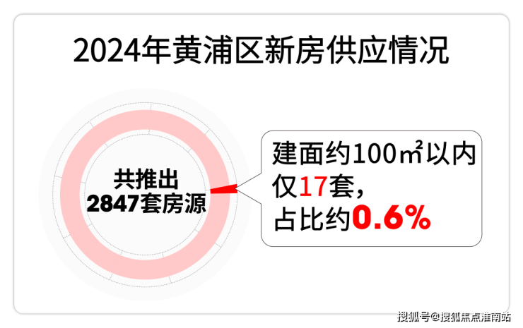 值得注意的是,黄浦这近3000套新房供应中,仅有17套建面约100㎡以内的小户型,占比约0.6%,属于非常臻稀的存在了。