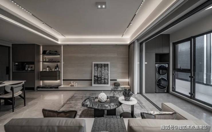 超过5m的南向宽景阳台,全景落地窗的搭配,观景视野开阔!值得一提的是,从客厅到阳台,地面都是通铺的仿石砖大规格柔光砖,真正实现空间一体化。