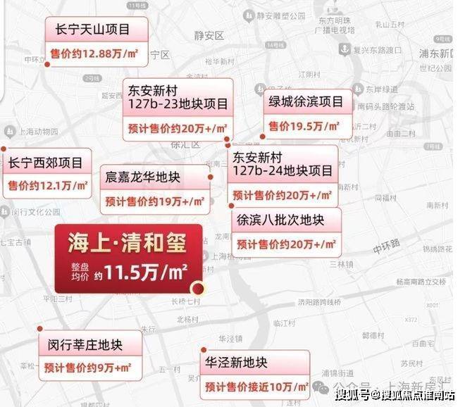 海上清和玺由两幅地块组成,(徐汇长桥xh315-10地块、xh313-16地块),项目四至范围:东至龙川路,南至罗香路,,西至长桥路,北至地块边界,临近中环高架!