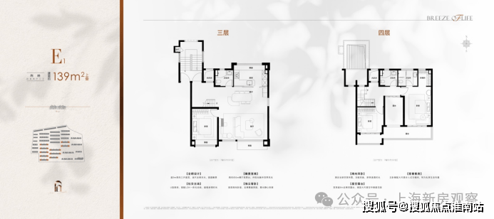 132–139㎡精奢上叠:南向面宽约9.2米,首层LDKB一体化设计 + 超大U型厨房,顶层配备超9米全景三露台,可打造空中花园或观景茶室,总价区间860–910万元