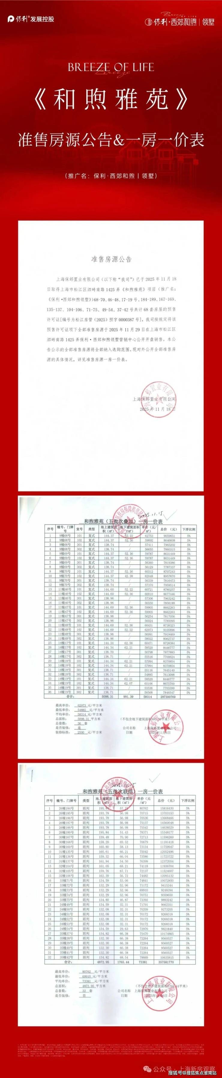 2025年10–11月连续问鼎“全市别墅网签TOP1”“松江区住宅网签TOP1”,销售金额、面积、套数均位列全市前茅,实际认购超400套,自证“保利红”定律