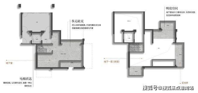 地下室挑高约5.4米,地下夹层层高约2.8米,双面采光井;