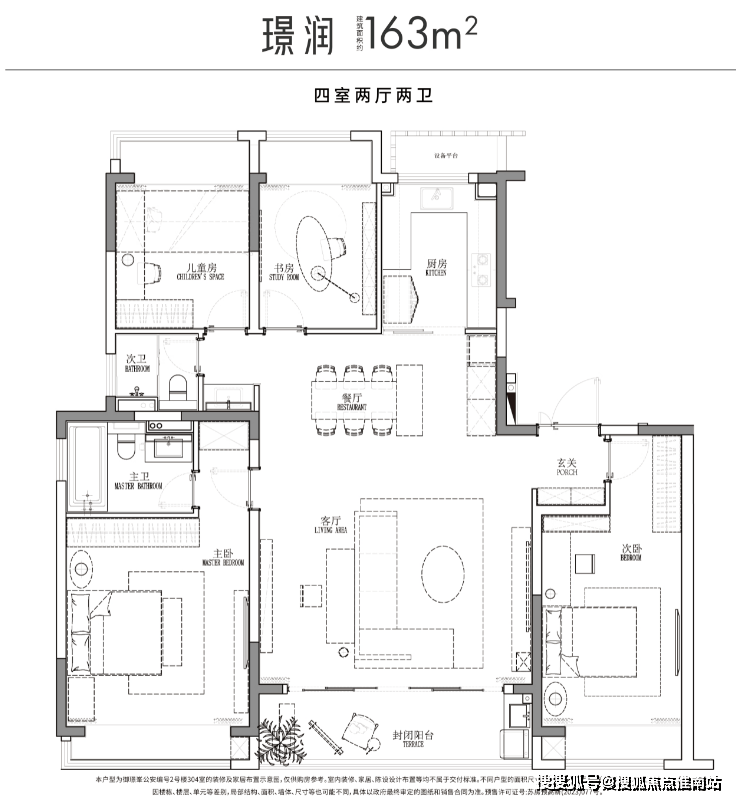 163㎡四房:总价约407-500万元,南向16.4m大面宽,9.2m宽境阳台