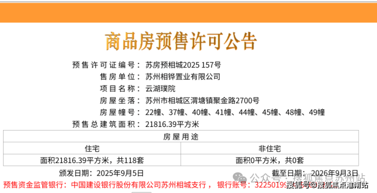 最新,位于相城的云湖璞院再次取证,共118套房源。