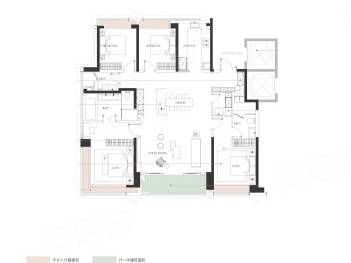 因此,外滩瑞府在建面约165㎡户型中创新推出三四房灵活定制体系。