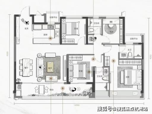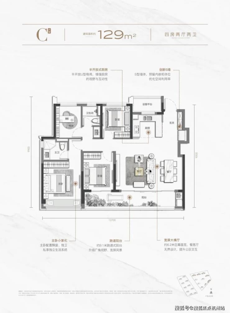 129㎡(4 室 2 厅 2 卫):阔绰四房、主卧套房、动静分区、家庭优选