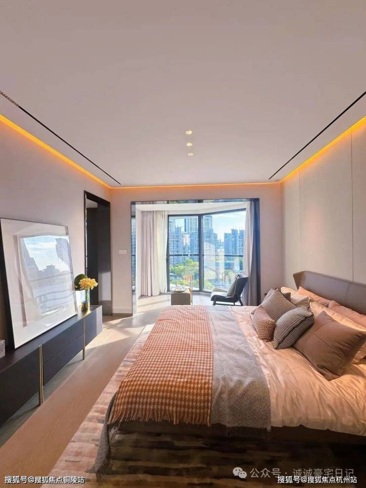 2F:主卧室全江景落地窗大套间+超大步入式衣帽间,两开间朝西南,可以观赏江景;另有一间多功能景观厅朝西南落地窗设计,直接与私密江景大露台相连,看江景位置佳,这个房间也可作为主人的私密会客厅或起居室。