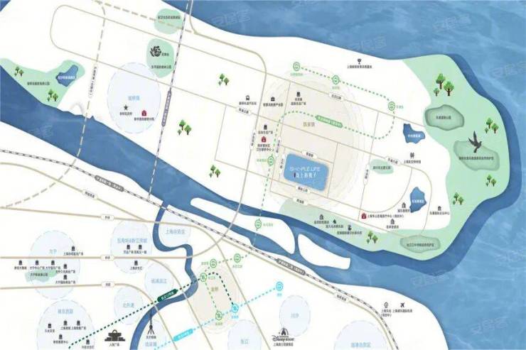 高端生活配套:陈家镇东滩板块将打造郊野度假主题公园配合自行车公园,岛上海船级游艇码头(规划)、36洞海岛高尔夫、赛事级马术运动中心、五星级酒店等五大高端国宾级配套,打造海岛生态旅游为特色的度假圣地,同时东滩北侧预留了30000亩主题乐园用地。