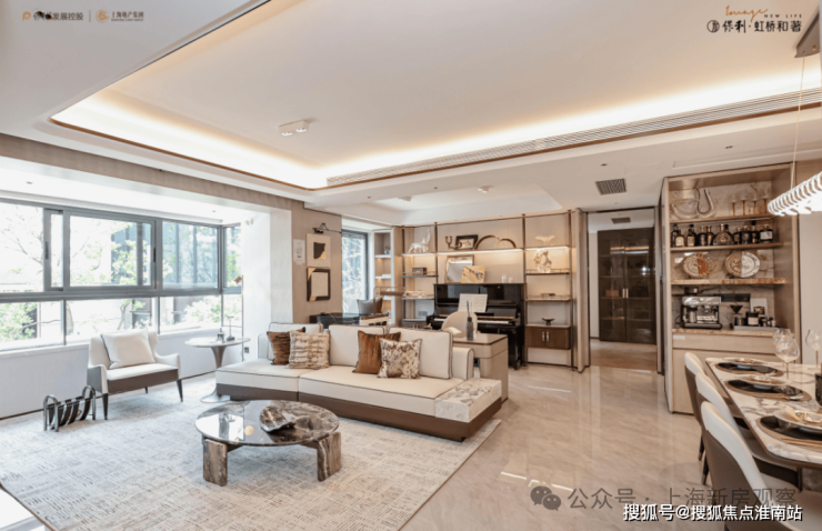 景观布局上,不得不说保利·虹桥和著更是令人惊艳!中庭的大树剧场,移植了超60年树龄的铁冬青,价值百万;约10米长的蓝钻大理石水景,由匠人手工精雕细琢;地面铺设爱马仕灰奢石拼花,尽显海派风情;奢适躺平水院,甄选西潘多拉和日出金霞发光石,宛如奢华酒店,未来业主可在此休憩、会客、社交,尽显豪宅排面。