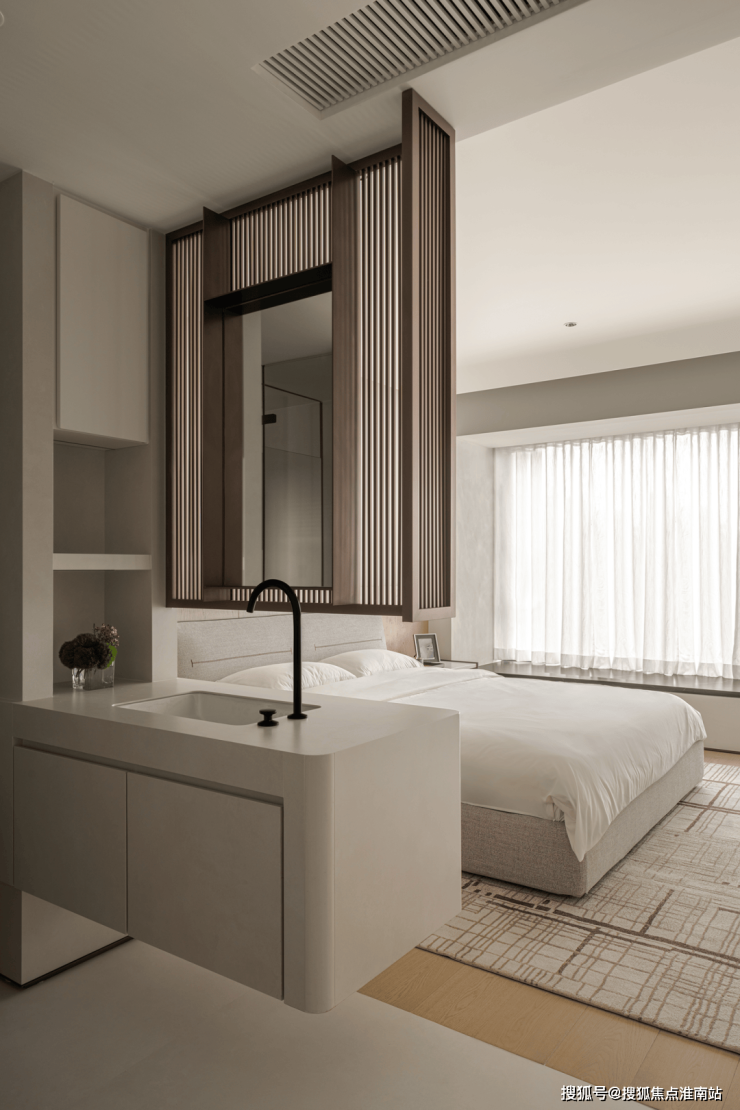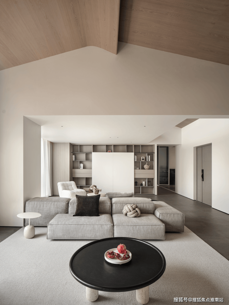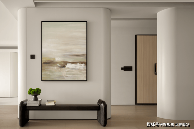 归家门厅设计为弧形顶棚,非对称构图,圆润的形式提供给业主放松的情绪价值。可以说是处处体现人居的松弛感和舒适度。