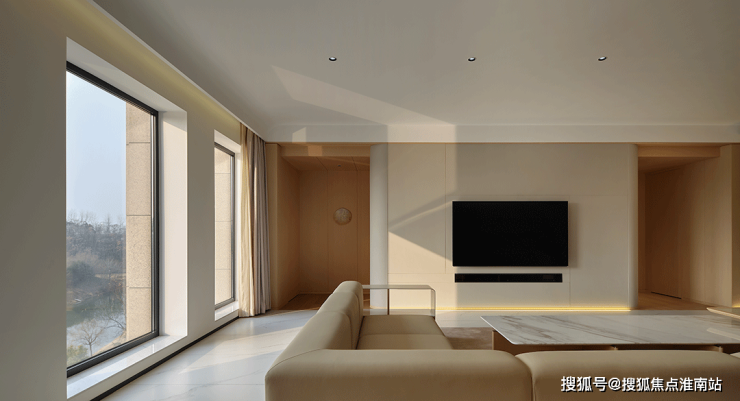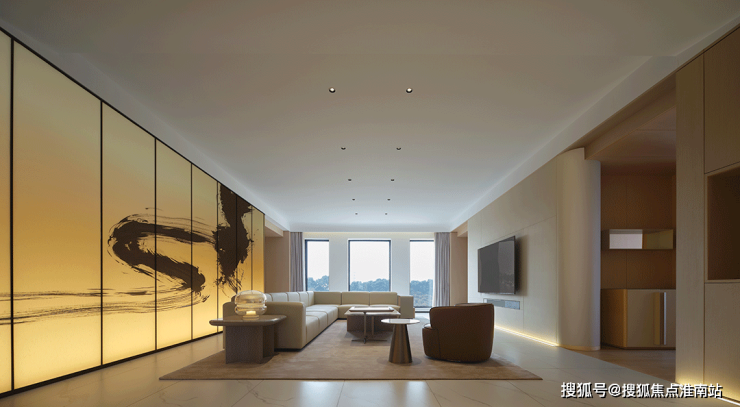 建筑上,先锋审美流体建筑、超大玻璃幕墙和全画幅开窗视野,以及立面部分材质是铝板装饰。都为居住者带来了开阔的视野和舒适的生活体验。非对称构图和圆润的形式,为业主提供放松的情绪价值。