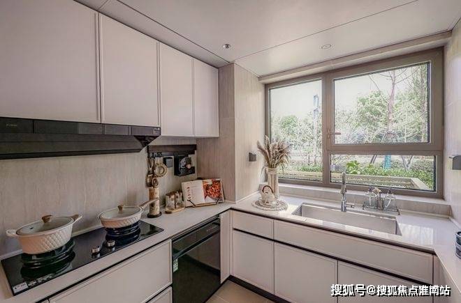 开放式 U 型厨房的宽奢操作台,让烹饪成为家人情感交流的舞台。