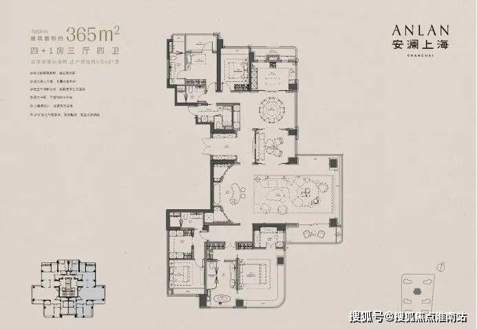 安澜上海推出建面约192-365m²户型,以极致的面宽,和首个实现三面环幕采光全景舱创造出极致通透与纯粹的居住体验。