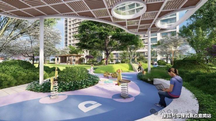 以自然会客厅为核心主景,融入艺术廊架、阳光大草坪、泛会所架空层、健康跑道、儿童乐园等功能场地