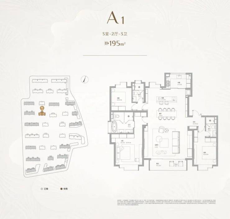 第三,首次入市的顶序产品,建面约195㎡3房。