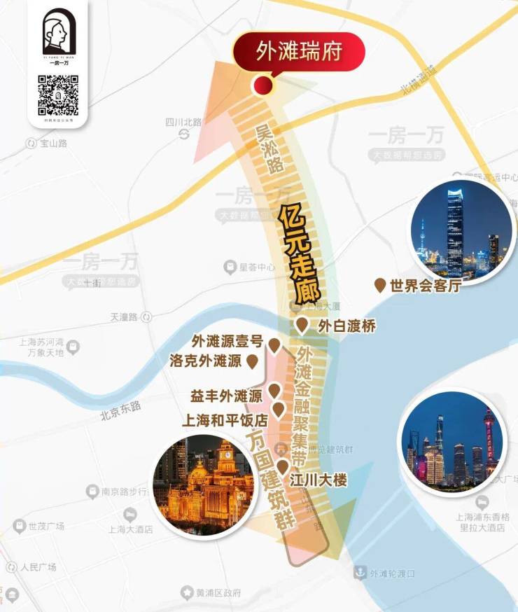 外滩 1 公里黄金区位:虹口内环内,外滩 - 陆家嘴 - 北外滩黄金三角,直线距外滩约 800 米