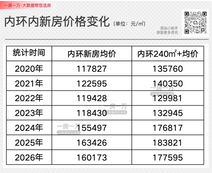 近年来内环内的新房均价也水涨船高,新建商品房均价从6年前的11.8万/㎡,一跃突破16万/㎡大关,涨幅突破40%!