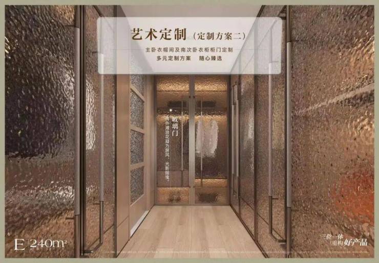 就以240㎡户型的主卧衣帽间来看,项目为业主提供了整体收纳、嵌入化妆台、mini bar等多种方案。