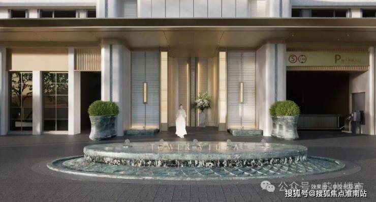 入口处对标奢牌酒店,以飞鸟展翅的灵动为设计灵感,米白色调贯穿其间,天然石材与香槟金金属板精心拼接的立面,弧形元素对称布局,勾勒出建筑的纯净质感,为归家之路奠定优雅基调。
