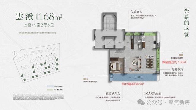 高附赠空间,实得率惊人:延续联发一贯的产品力优势,本次叠墅产品通过挑空、露台、飘窗、地下室等多维空间设计,实现超高附赠率。以建面约182㎡下叠为例,实际可使用面积可达约292㎡,实得率高达约161%;建面约168㎡三面宽上叠,实得率亦超139%。每一寸空间皆物超所值。