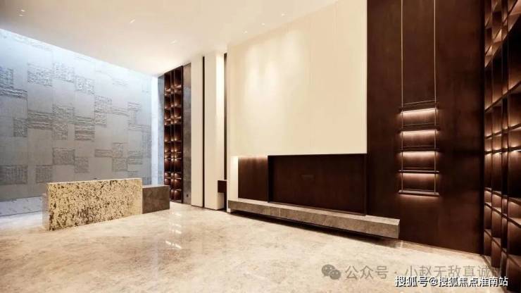 茶柜装饰设计:潘多拉石材台面搭配金属立板,材质间形成雅致对话,精致且不失格调。
