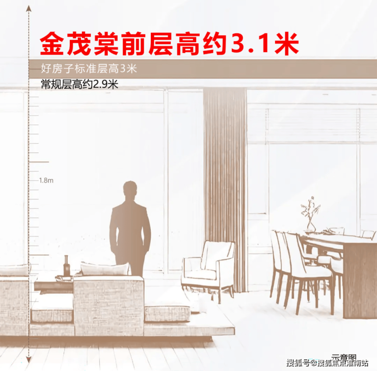 值得一提的是,项目标准层都做到约3.1米的层高,远超“好房子”要求的基准线,比普通住宅的层高更是多了约20厘米左右。
