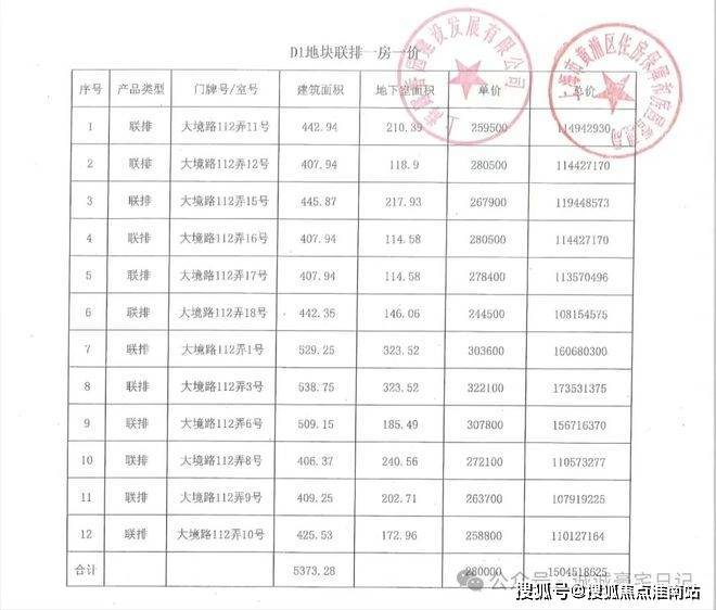 【一房一价表】