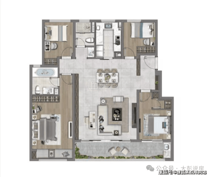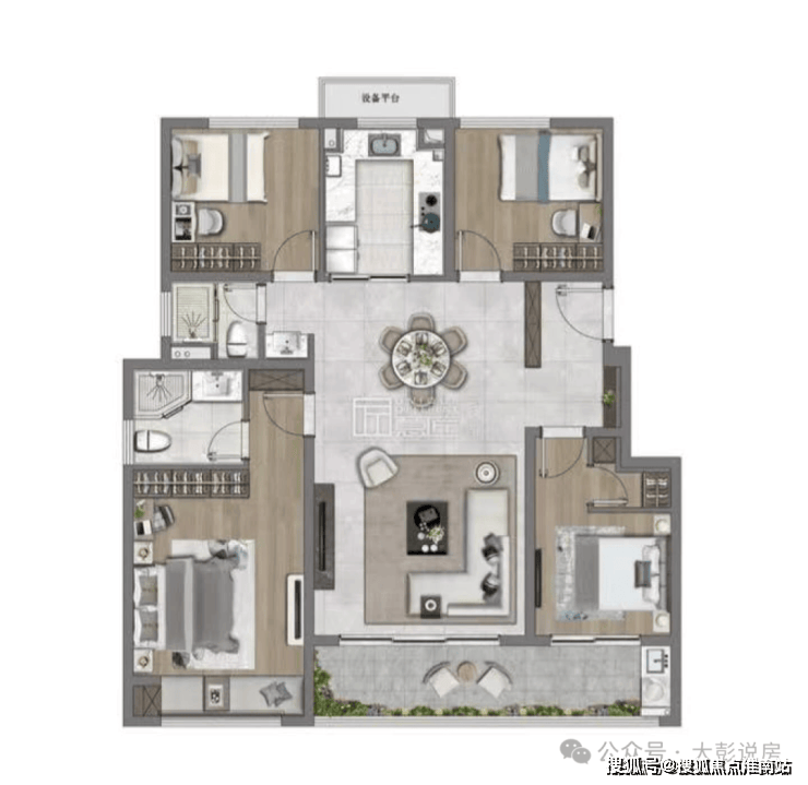 约120㎡的户型,约23㎡主卧套房沉稳大气,独立卫浴起居更从容,搭配仪式感漫漫的衣帽间,顷刻化身独家秀场,重塑精致生活尺度。