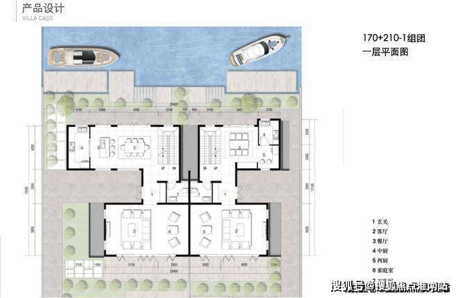 每一排别墅前都有一条渠道,引入水系,每户都带有水岸码头,用来停靠游艇,并且水系的分布确保每家都能开游艇到兰香湖中心,周末逛街shaopping,下了游艇到家再游个泳,不用出国就能享受棕榈岛同款生活。