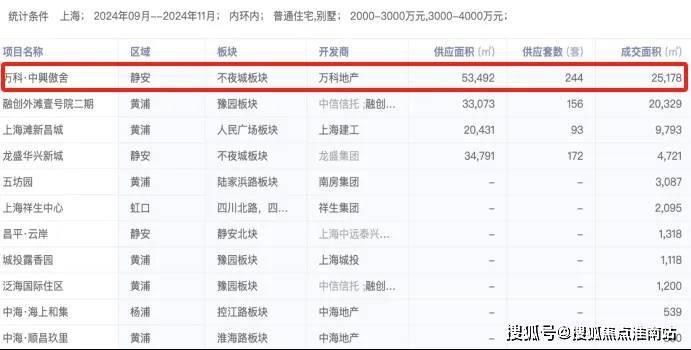 克而瑞数据统计,2024年9-11月上海内环内2000-4000万级别高端项目中,中興傲舍力压黄浦的融创外滩壹号院二期、露香园等老牌豪宅,成交量持续霸榜TOP1。